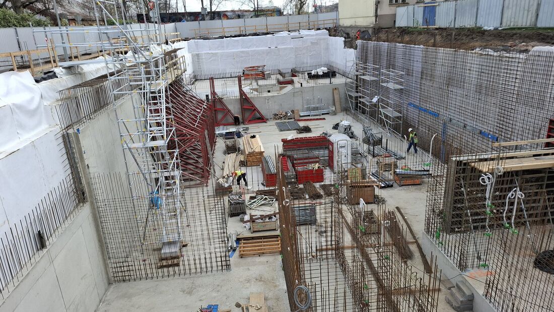 Stavba školy - kontrolní den 14. dubna